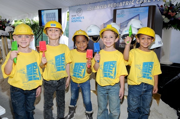 Children from Miami Children’s Hospital’s Child Care Center took part in a groundbreaking for the hospital’s planned new Advanced Pediatric Care Pavilion. Shown (from left to right) are: Joshua Casuso, Timmy Kinnebrew, Mia Campbell, Nicholas Acebal and Vincent Abreu.