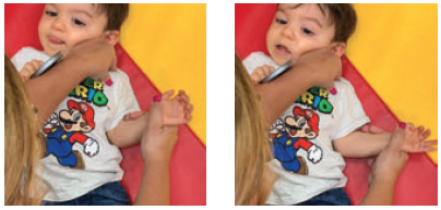 Position: Child is sitting or may be on his/her back.