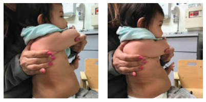 Position: Baby is on his/her back and affected arm is by child’s side.